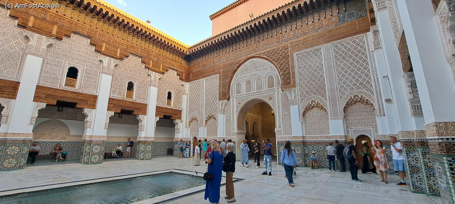 În prima zi petrecută în Marrakech mai aveam de vizitat Madrasa Ben Youssef, considerat unul dintre cele mai de seamă obiective ale Orașului Roșu, așa cum este supranumit Marrakech, grație nuanței zidurilor și a majorității clădirilor din medina, cartierul său cel mai vechi.