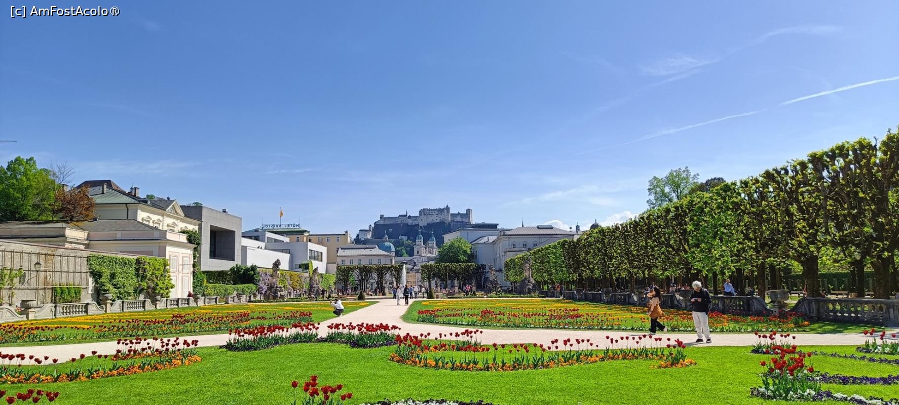 Despre Grădinile Mirabell s-a mai scris aici; ele înconjoară din trei părți (sud, vest și nord) Palatul Mirabell, formând – împreună cu acesta – un ansamblu inclus în Patrimoniul Mondial UNESCO. Accesul este gratuit, atât în palat, cât și în grădini. Am vizitat grădinile într-o altă viață, acum mai bine de 15 ani, și am intrat atunci și în palat, pentru a admira cunoscuta scară barocă.