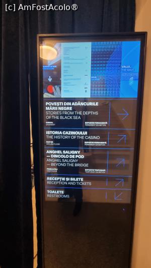 Expoziția de la etaj dedicată lui Anghel Saligny, celebrul inginer care a construit podul de la Cernavodă și a modernizat portul Constanța. adăpostește o biografie a renumitului inginer, fotografii cu amenajarea portului și a silozului de cereale și o machetă a podului de peste Dunăre, de la Cernavodă. Sunt informații interesante. iar fotografiile tehnice sunt captivante. Mai există o sală goală de unde se poate admira marea și portul. Se pare câ în această lună, expoziția dedicată lui Anghel Saligny va fi înlocuită de una dedicată procesului de reabilitare a Cazinoului, unde vor fi diferite activități educaționale și ateliere pentru cei mici.