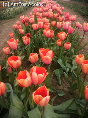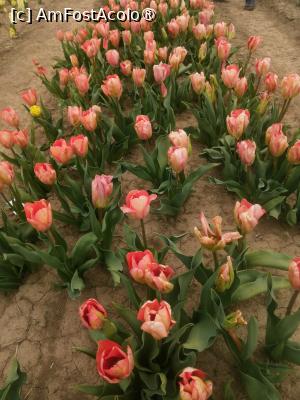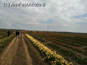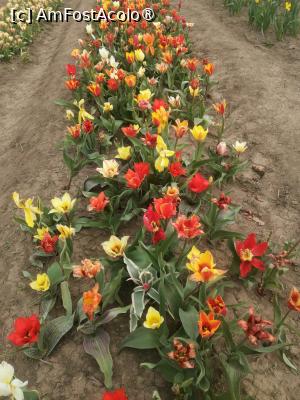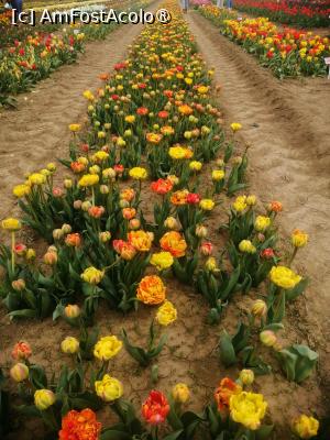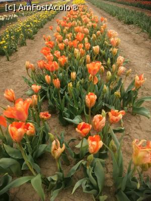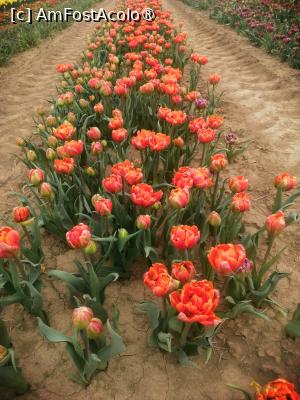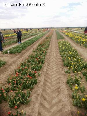 Initial am crezut ca vom fi singuri pe acolo, dar ce sa vezi parcarea care putea gazdui cateva sute de masini era aproape plina, dar chiar si asa campul este destul de mare astfel incat sa nu para a fi aglomerat. Sunt peste 600 de soiuri de lalele fiecare marcate cu placute cu denumirea acestora. Exista o mica zona cu cateva animale, un loc de luat masa, anul trecut erau cateva rulote cu fast food international, uneori au loc tot felul de miniconcerte de muzica clasica, folclor, sau muzica pop de obicei acestea sunt anuntate din timp. Exista si o zona din care se pot culege flori, primesti un cos si o foarfeca, apoi mergi si culegi ce flori doresti, la intoarcere cineva din personalul locului iti numara florile taiate iti da un biletel cu care mergi si platesti, anul trecut un fir de lalea costa 3,5 lei, sincer aceasta a fost partea care mi-a placut cel mai mult. Am uitat sa spun iar biletul de intrare de persoana a costat 50 de lei, persoanele cu handicap beneficiau de gratuitate iar copii de reducere, nu sunt chiar sigur dar cred ca in timpul saptamanii biletul de intrare era mai ieftin, 30 lei!
