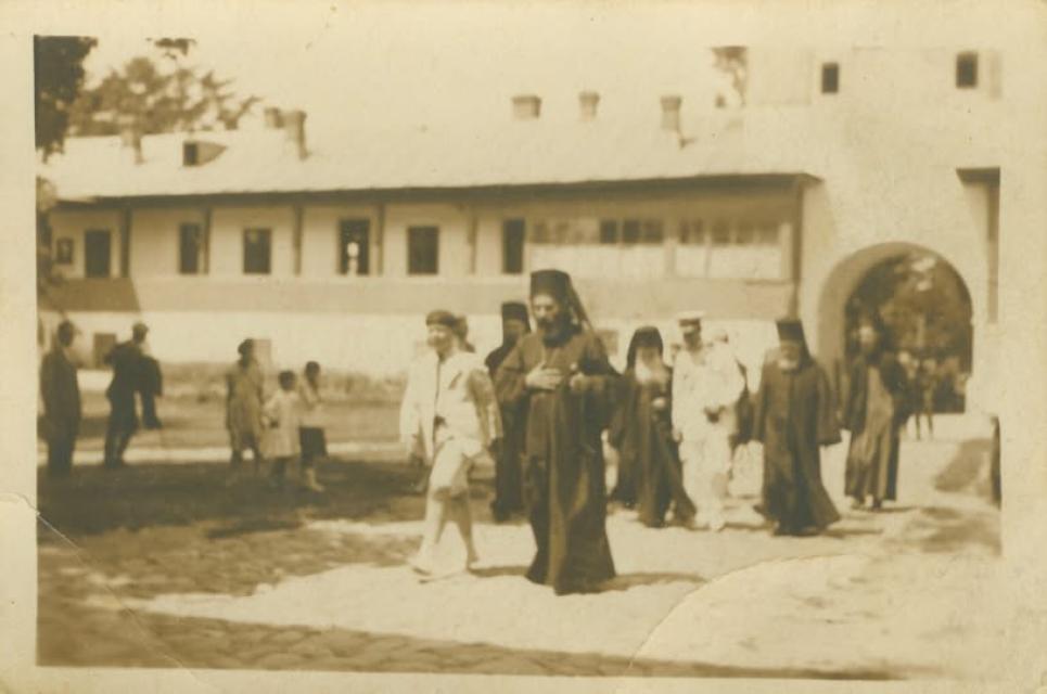 Intrarea în mănăstire o puteți vedea în pozele mele: P8-P9. Așa arăta și în anii 30, mai puțin turnul rotund futurist de deasupra porții, acesta a fost construit în 96