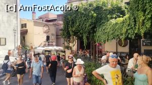 In oras, nu ai voie sa folosesti autotuismul sau alte mijloace de locomotie decat picioarele. De fapt nici nu stiu cum s-ar descurca autoturismele pe strazile inguste si in panta, ale orasului, ba mai gasesti din loc in loc, si niste frumoase porti de piatra cu arcade, ce ar ingreuna mult circulatia lor. Asadar, Taormina este un oras pietonal, c-un aer curat, cu multa, multa verdeata si cu marea si plaja la doi pasi (unde insa noi, acolo, pe frumoasele plaje cu nisip sau pietris, scaldate de o apa a marii mai sarata si mai calda decat de obicei, plus in unele grote si golfulete sau la ’Isola Bella’, din lipsa de timp, n-am mai ajuns). Am impresia ca Taormina are de toate, e un fel de ’all-inclusiv’ turistic, cu mare, plaje, istorie, un amfiteatru superb, magazinase si taverne cu o sumedenie de produse locale si bunatati culinare, e-un loc ce-ti incanta ochii, mintea si stomacul.