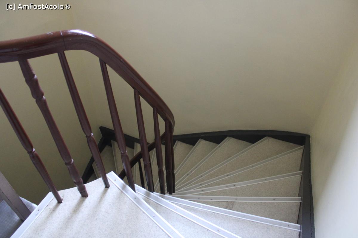 [P05] 5. IMG_7209 Bruxelles, În Inima Bruxelles-ului, Scara destul de strâmtă și abruptă cu platformă de odihnă la fiecare nivel