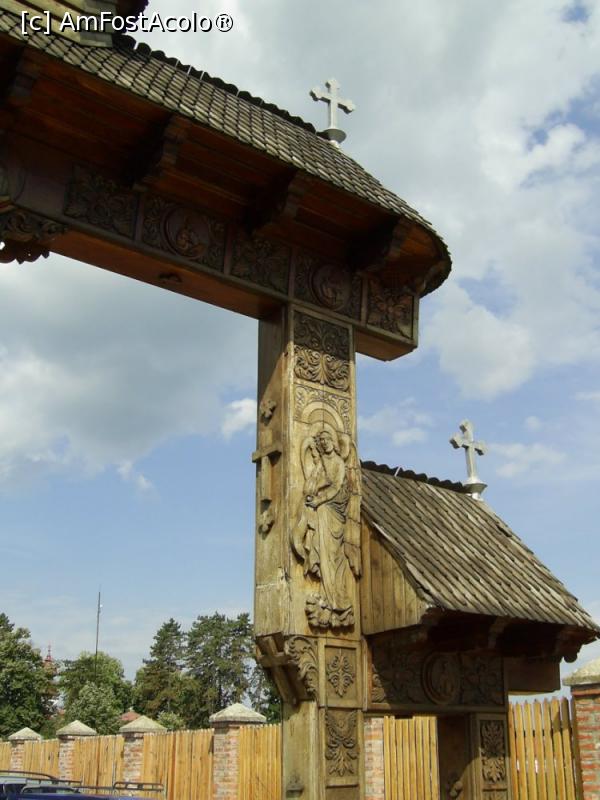 [P14] Mănăstirea Hodoș-Bodrog - Poarta de lemn din parcare, detaliu.