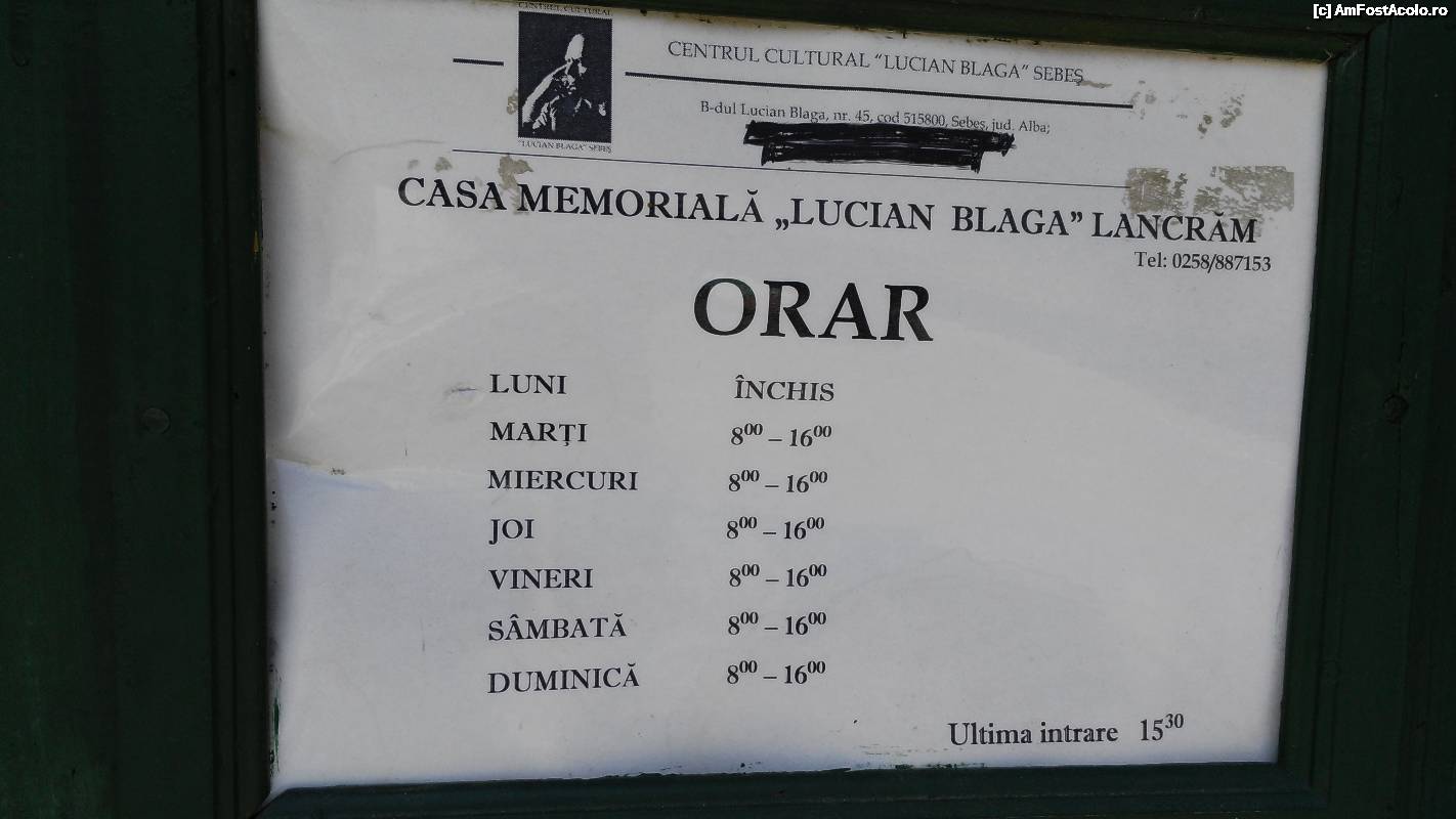 [P27] Casa Memorială Lucian Blaga - orarul și numărul de telefon de contact.