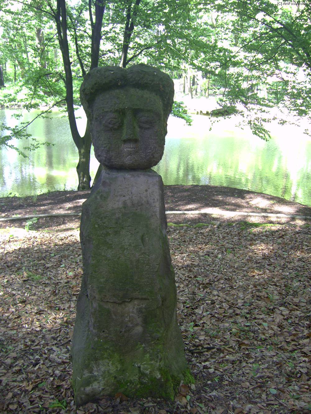 [P08] O statuie din piatra amplasata pe marginea lacului