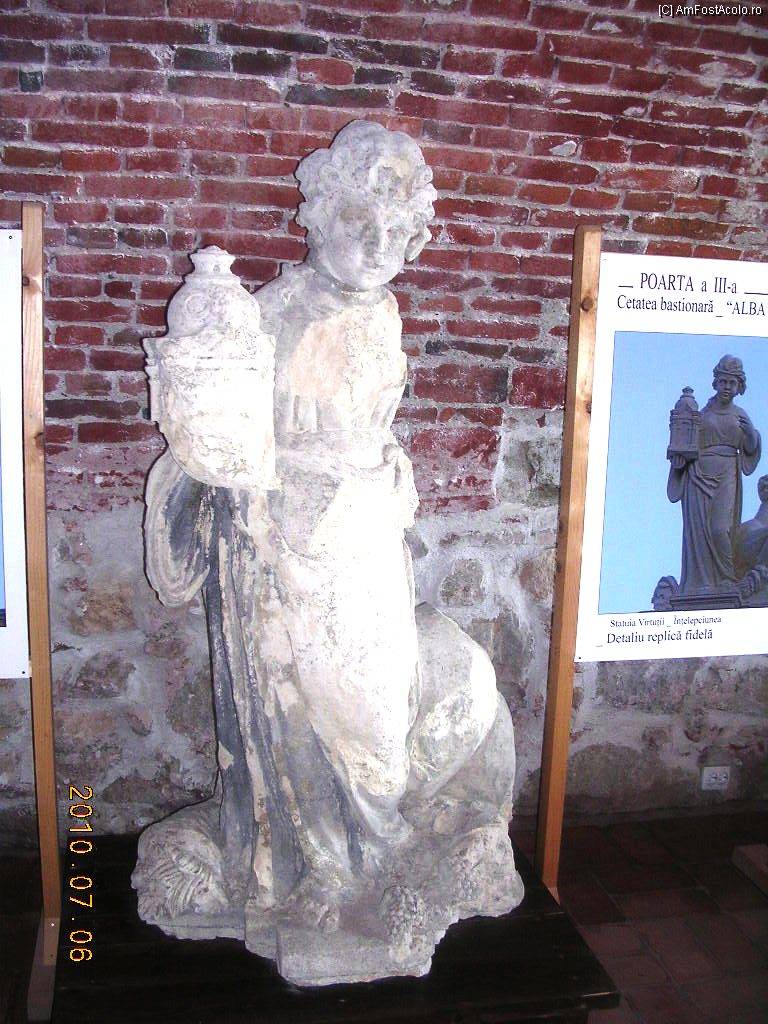 [P11] Statuetă originală de pe Poarta a III-a a cetăţii. Fiind cioplită din piatră de calcar a fost degradată de intemperii.