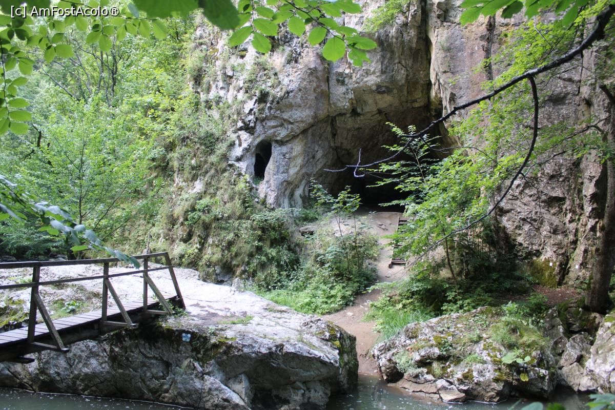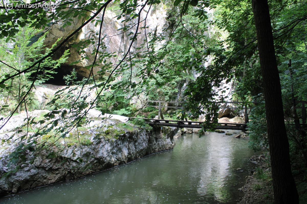 [P47] Cheile Vârghișului, Podețul ce duce la Peștera Șura Cailor pozat de la intrarea în peșteră