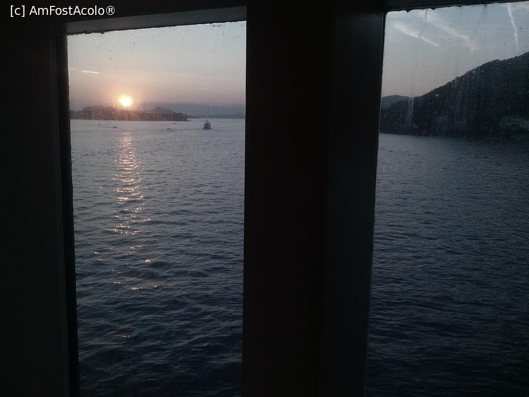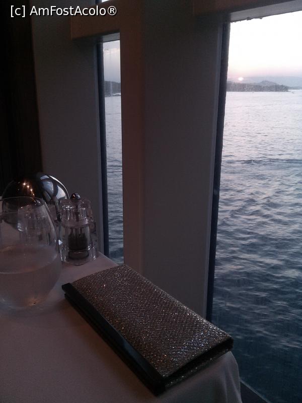 [P09] Apus de soare vazut pe geamul de langa masa de la restaurant