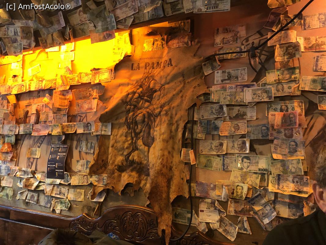 [P68] Pereții de la cârciuma La Pampa sunt tapetați cu bani, inclusiv românești.