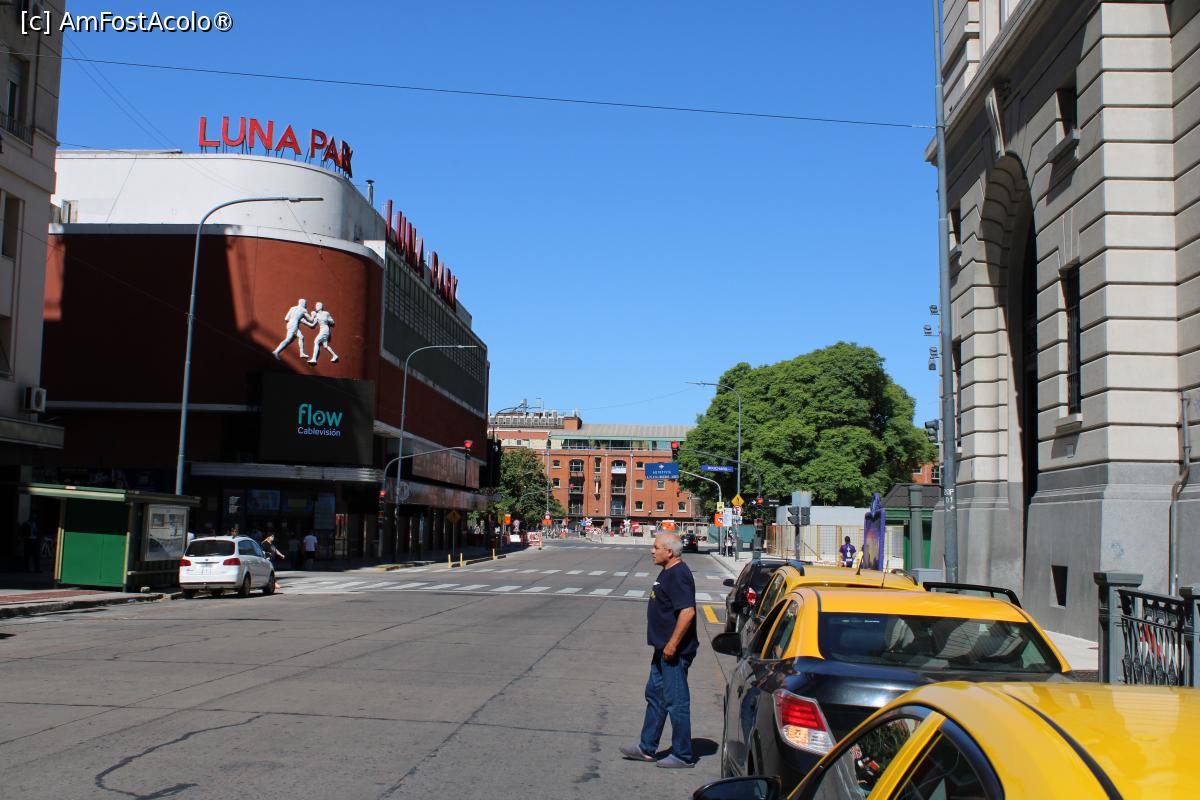[P38] Buenos Aires, Puerto Madero, Estadio Luna Park așezată la intersecția dintre Av. Corrientes, partea terminală spre Puerto Madero, se văd și clădirile roșiatice ale docului și Av. Bouchard