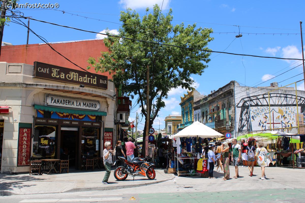 [P26] Buenos Aires, Caminito, Panadería y Cafetería La Madrid în interescția dintre străzile Dr. del Valle Iberlucea și Gral. G. Araoz de Lamadrid, se vede puțin și Mural República de la Boca