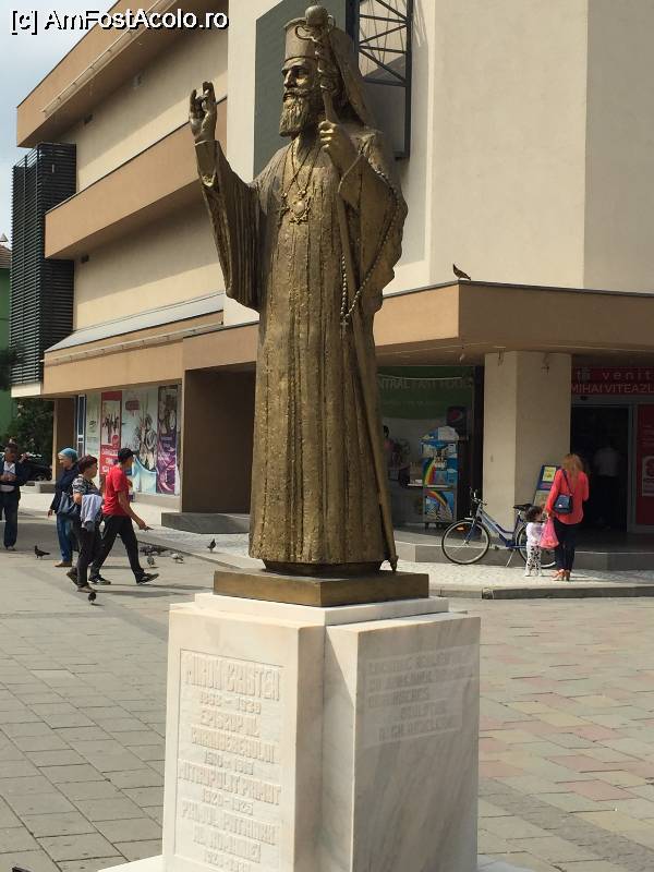 [P03] statuia primului patraiarh al Romaniei si episcop al Caransebesului MIRON CRISTEA situata in fata Catedraului episcopale Invierea Domnului din Caransebes