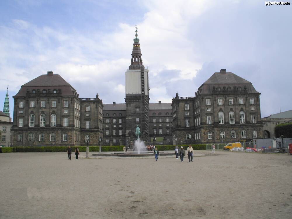 [P27] Christiansborg, văzut din crtea de călărie. În mijloc, statuia ecvestră a regelui Christian al IX-lea.