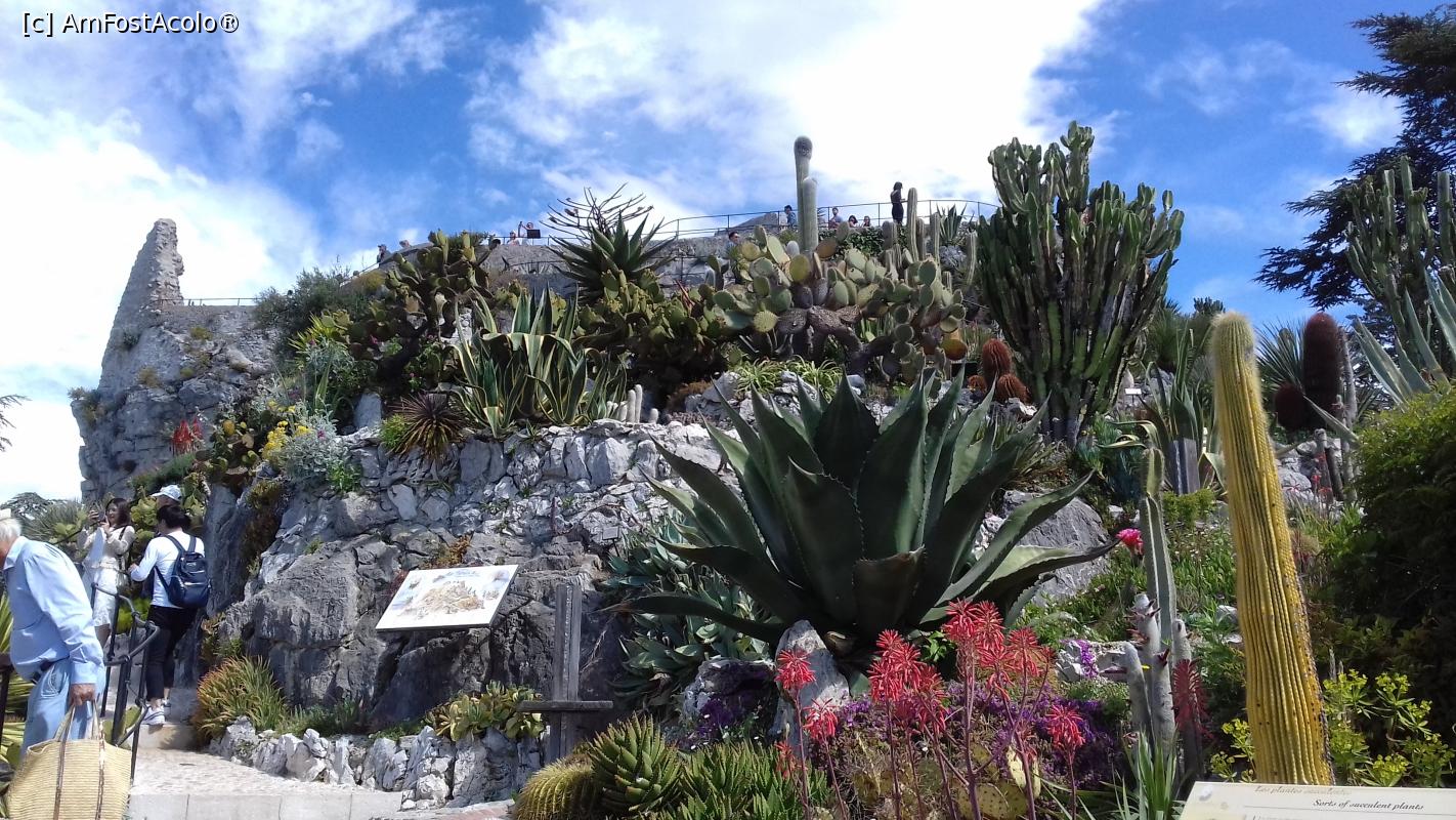 [P28] Cactuşi din Jardin Exotique d' Èze, se poate observa şi cea mai înaltă platformă pe care se află ruinele fostei fortăreţe medievale