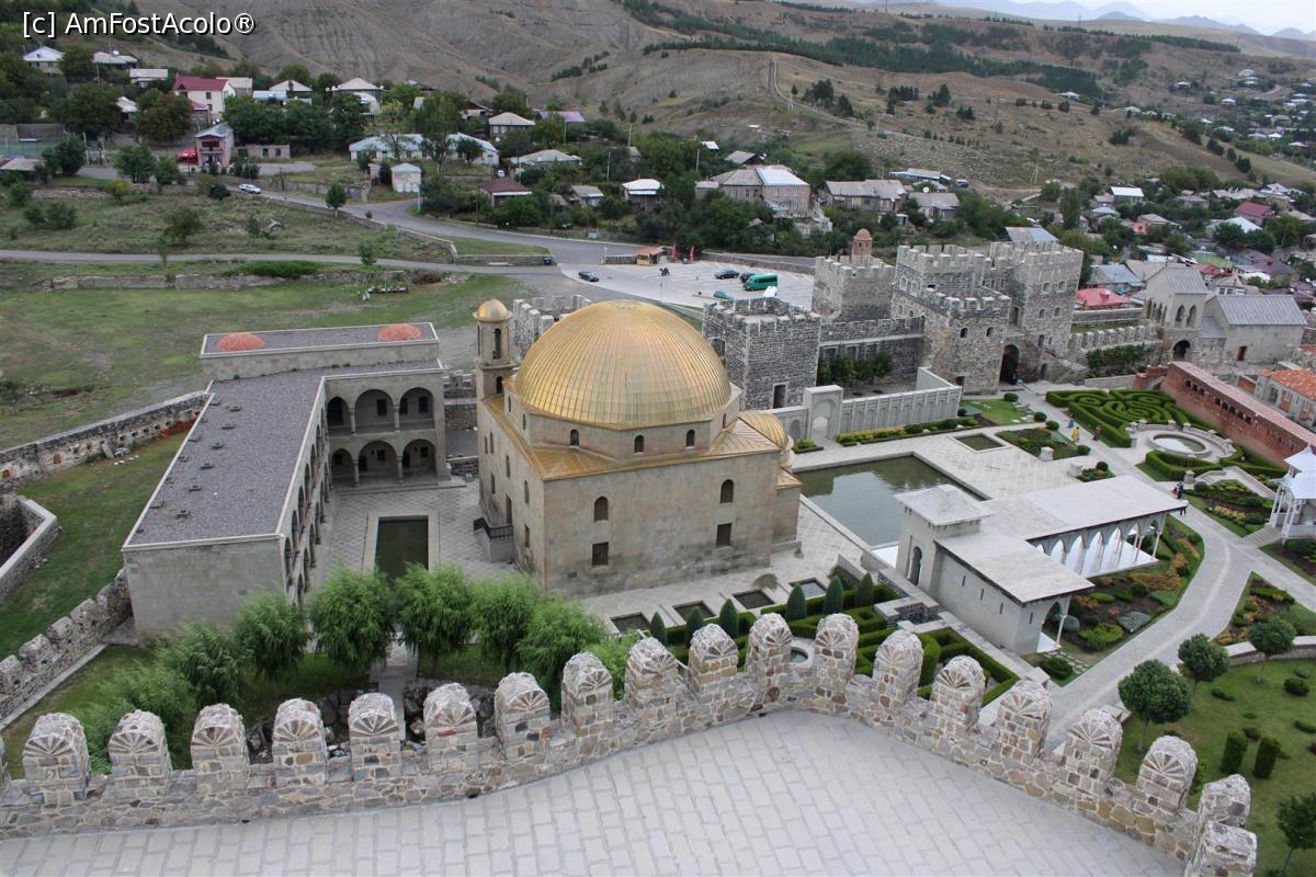 [P44] Akhaltsikhe, Grădina Castelului Rabati văzută din Turnul Castelului, frumoase pavilioane, Ieșirea din Castel dar și Biserica Ortodoxă, poză mărită
