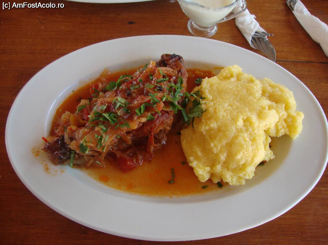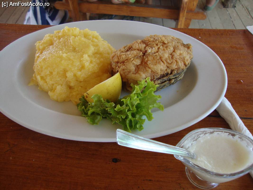 [P40] Iată și porția mea de plachie crap cu mămăliguță. Mâncarea a fost bună!