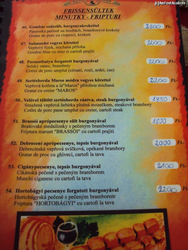 [P17] O mică parte din meniul afişat la Kemences Csarda.