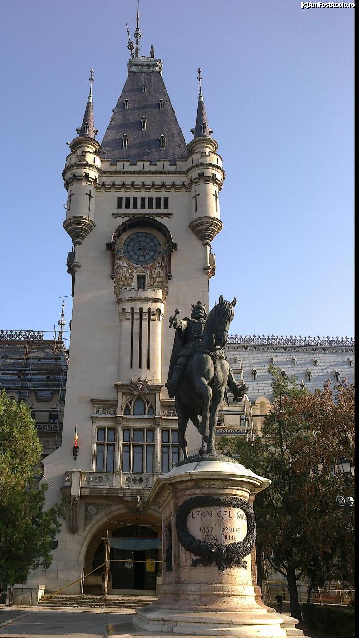 [P09] Iasi - Statuia lui Stefan in fata turnului cu Ceas al Palatului Culturii
