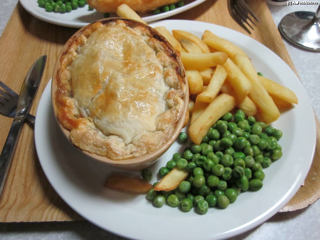 [P12] Beef pie servită cu garnitură.