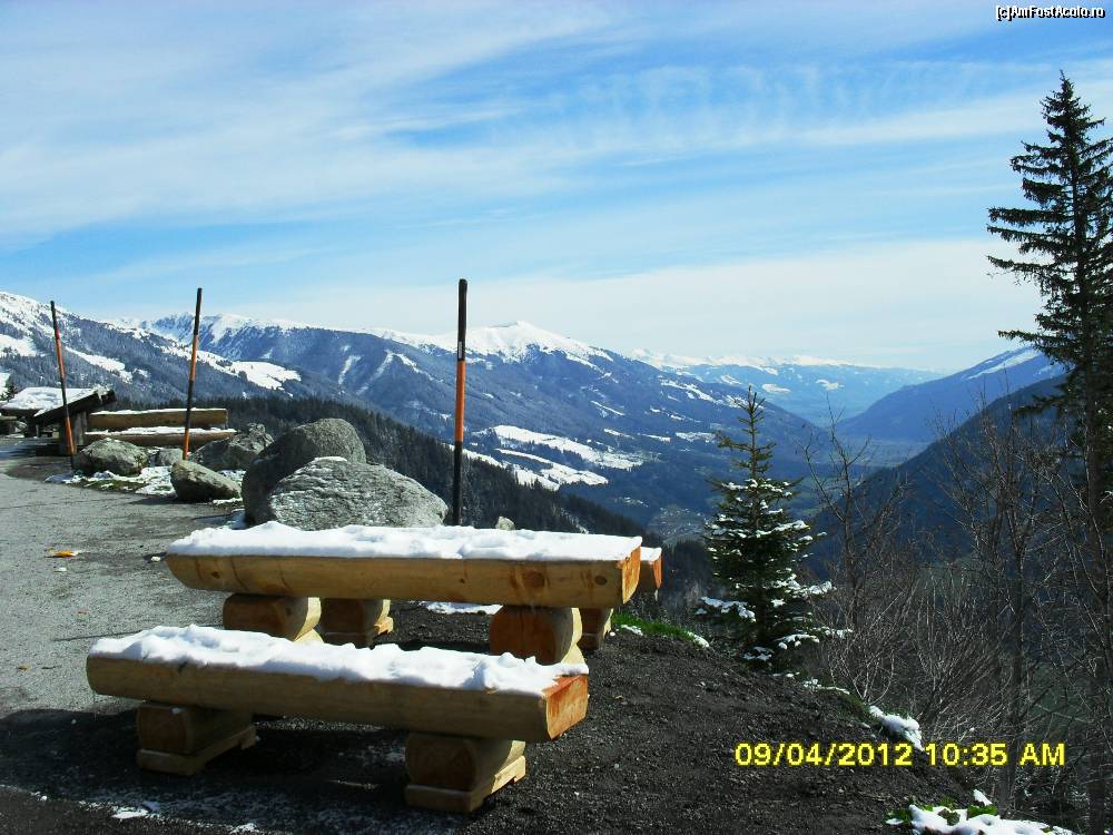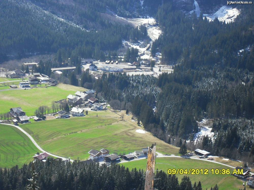 [P74] suntem la un alt loc de popas.De aici de sus se vede acolo jos statiunea Krimml si in dreapta undeva se vede cascada.