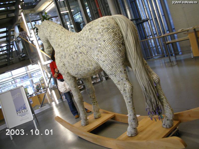 [P47] La oficiul de turism de la intersecţia Königstraße cu Königstorgraben se organizează şi expoziţii. Aceasta este o operă de artă modernă, aparţinând unui artist grec şi realizată din taste de calculator. Coada este din cabluri de tastaturi.