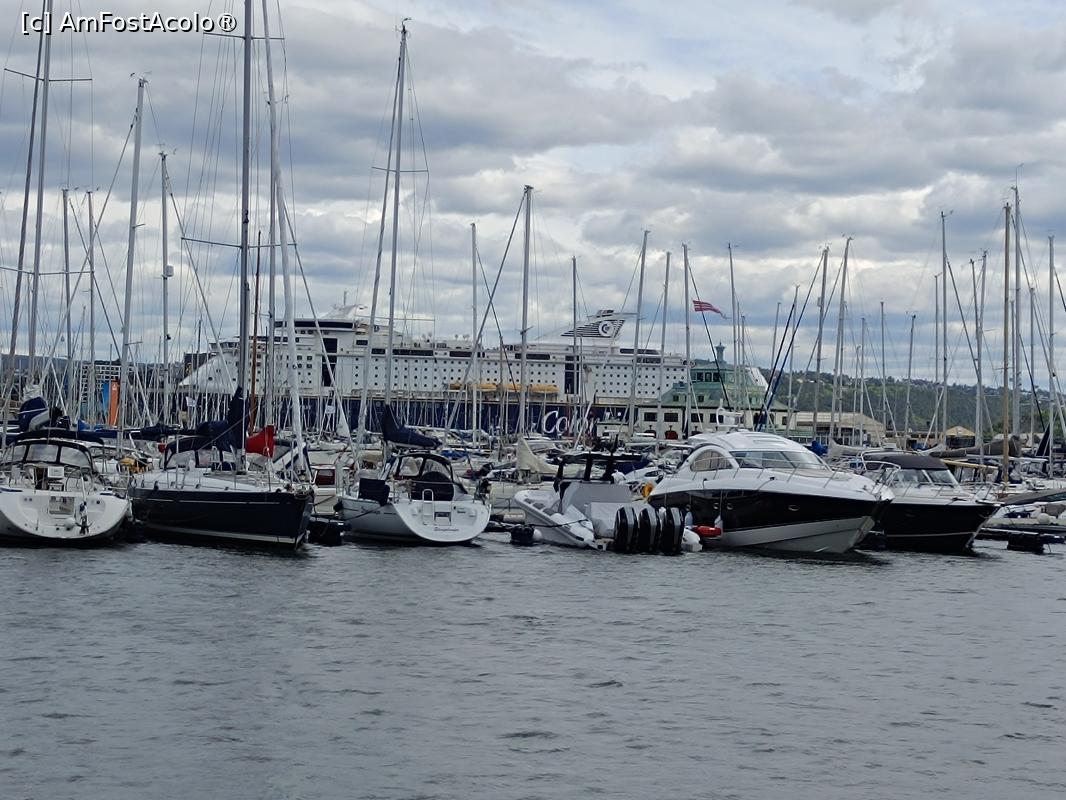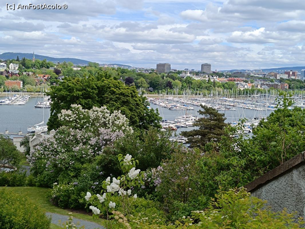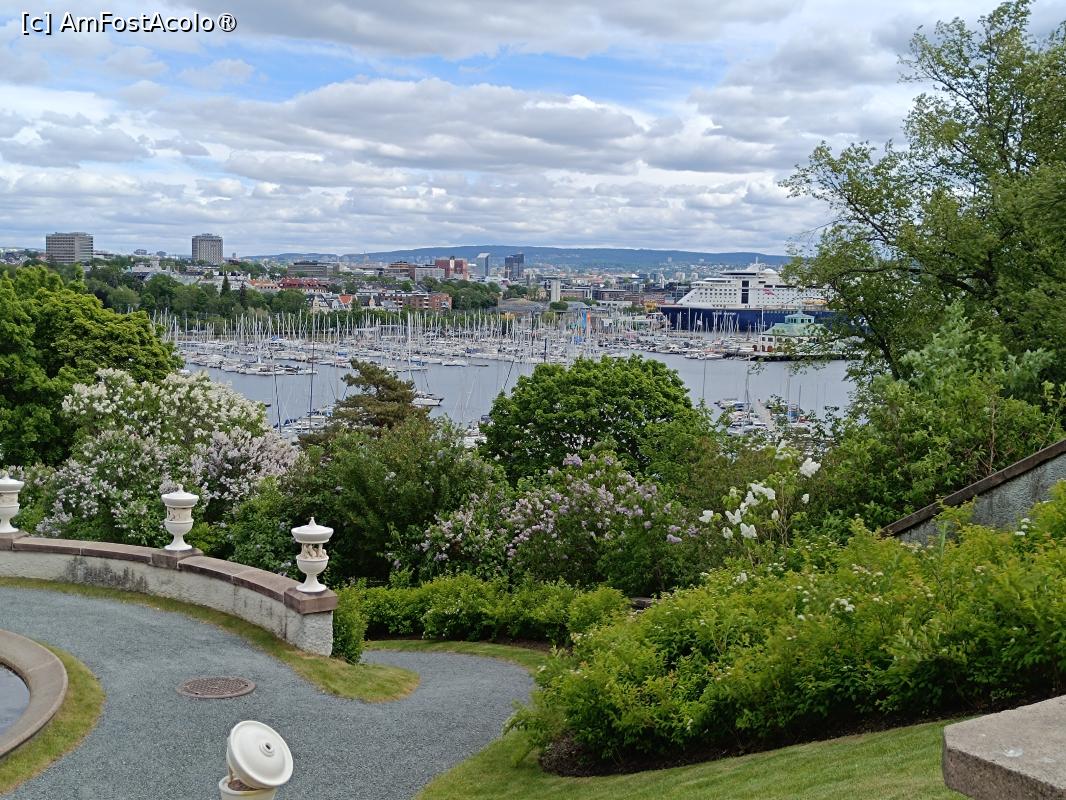 [P38] Oslo, Oscarshall, Portul și Ambarcațiuni văzute de pe Faleza Regală de la Clădirea Cavalerului dar și debarcader