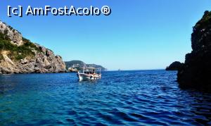 ![[P19] Ieșirea spre larg a Golfului Agios Spyridon (5.6.). O barcă cu turiști se îndreaptă spre grota unde s-au iubit Ulise și Nausicaa (6.6.). În depărtare, la orizont, este ”corabia” lui Ulise, pietrificată de către Poseidon (6.11) » foto by Lucien
