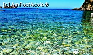 ![[P21] Apele incredibil de limpezi ale Golfului Agios Petros (punctul 5.7 din text). În stânga-spate este stânca Skeloudi, paradisul scufundătorilor (6.8.) și reper pentru Submarinul Galben (6.2). » foto by Lucien