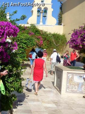 ![[P32] Curtea interioară a Mănăstirii Paleokastritsa (punctul 6.3 din text) cu ”Fântâna dorințelor” în partea dreaptă și cu clopotnița în stil corfiot în spate » foto by Lucien