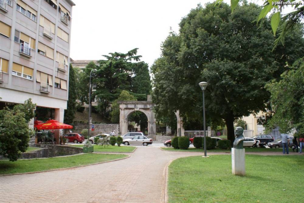 [P23] Pe aici, prin Porta Gemina, este intrarea în parcul din faţa Muzeului Arheologic al Istriei