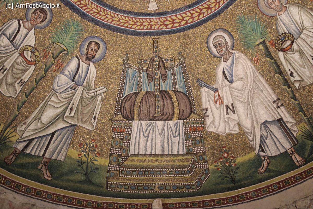 [P21] Ravenna, Battistero degli Ariani, Cupola, detaliu, tronul gol al etimasiei, în dreapta Petru, în stânga Pavel