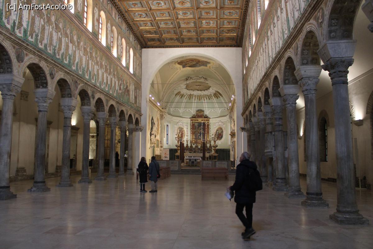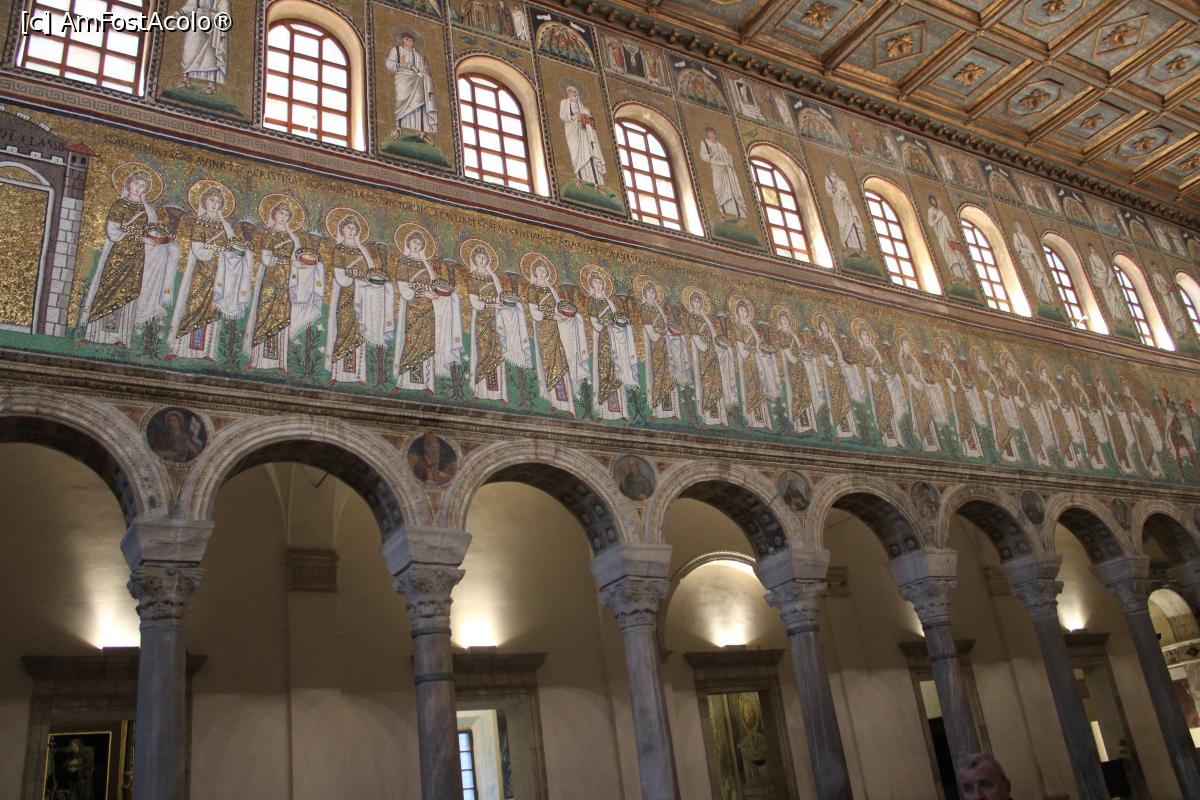 [P28] Ravenna, Basilica di Sant'Apollinare Nuovo, interior cu superbe mozaicuri deasupra coloanelor...