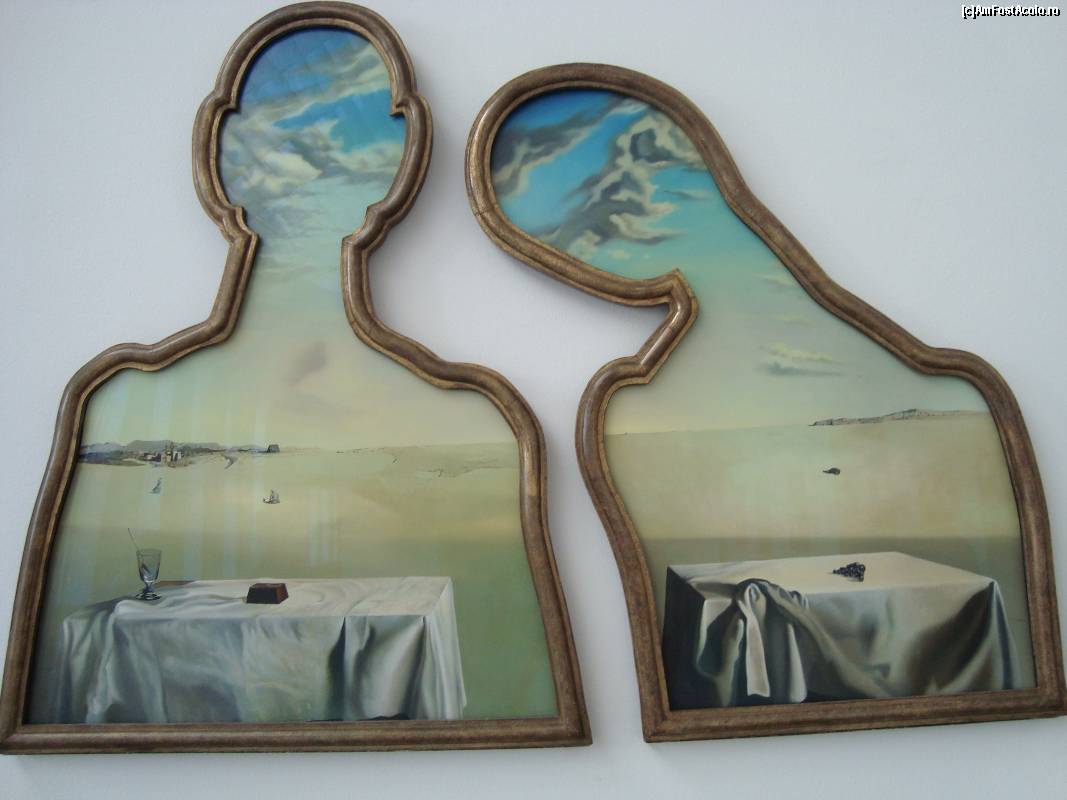 [P11] Salvador Dali -Couple aux tetes pleines de nuages, cu două contururi, ale lui Dali și ale Galei, cei doi îsi spun rugăciunea de seară pe un cămp.
