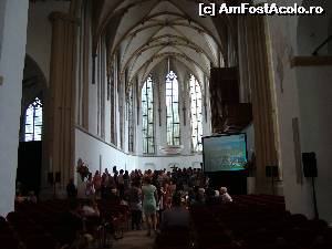 [P02] Primul client la orele 10. am... imagine din interiorul bisericii... se vad:vitraliile, orga, boltile arcuite ale fostei biserici