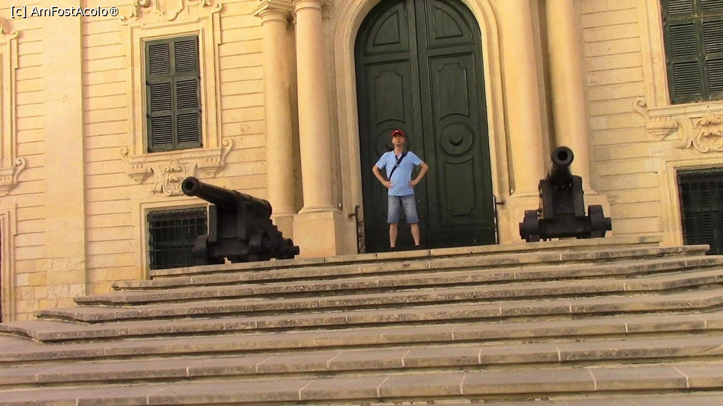 [P87] Subsemnatul intre cele doua tunuri de la intrarea in sediul guvernului maltez din Piata Castille.