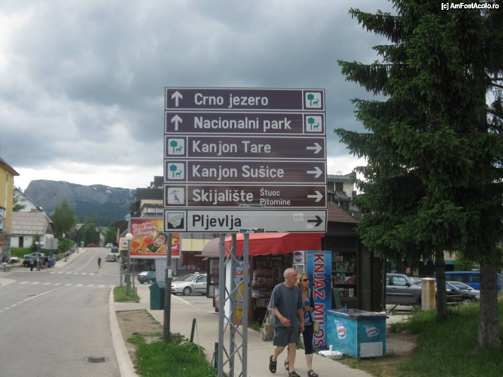 [P18] Stradă în Zabljack care duce la Lacul Negru şi tăbliţa de orientare. Muntenegru.