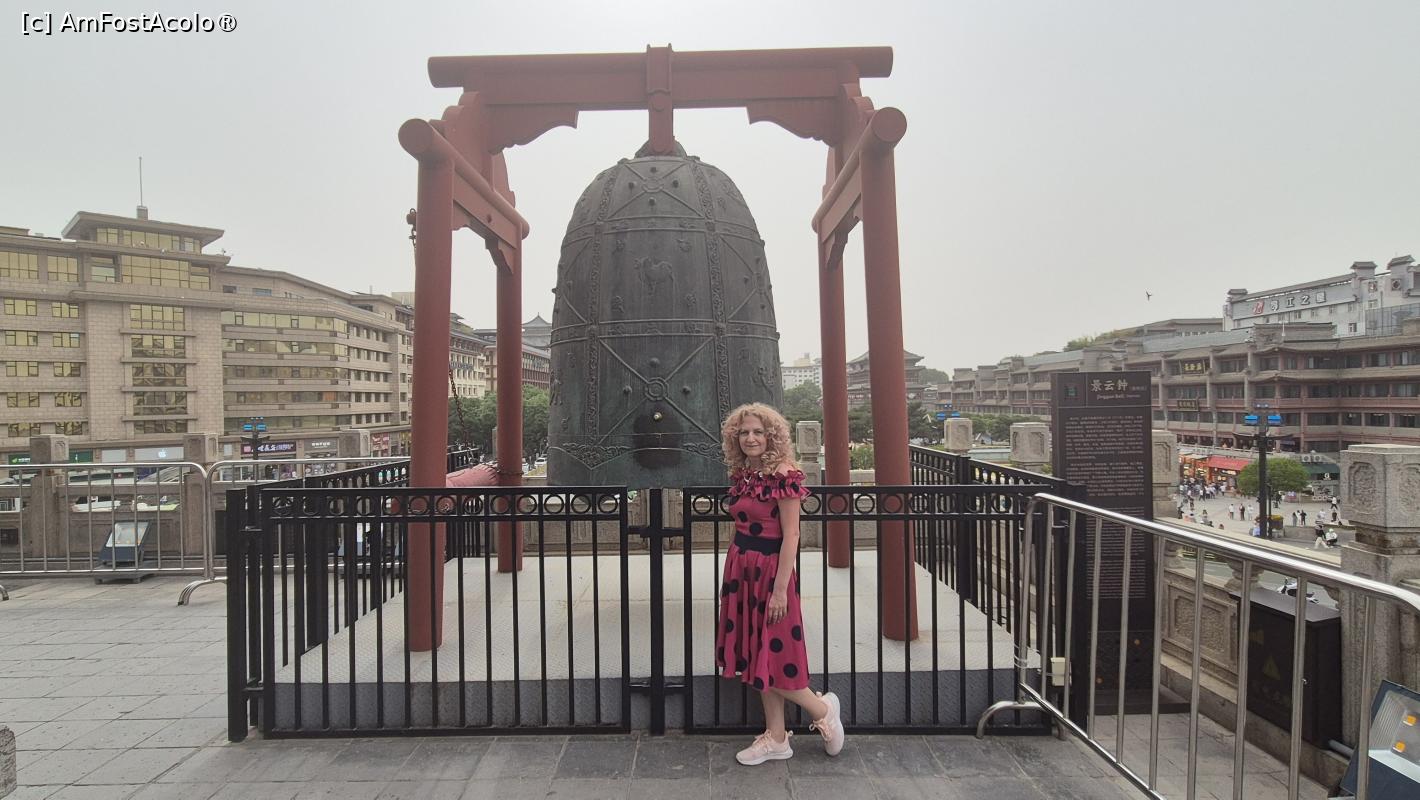 [P31] Bell Tower a fost construit in 1384 de imparatul Zhu Yuanzhang, langa Turnul Tamburului din Xi'an, pe axa centrala a orasului, marcand centrul orasului. Pe masura ce orasul crestea, centrul geografic al acestuia s-a schimbat. Prin urmare, in 1582, turnul a fost mutat la 1000 de metri la est de locul initial.