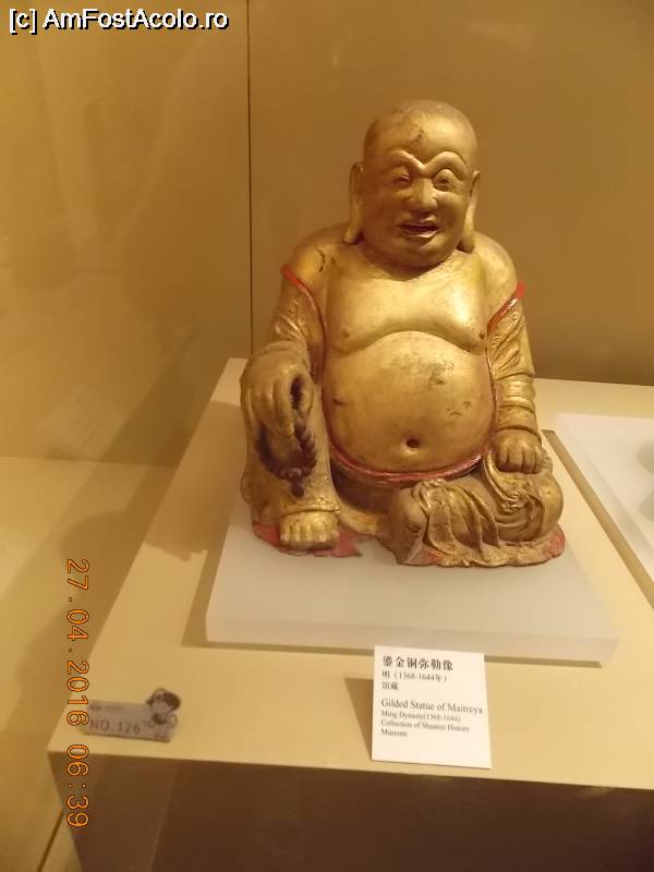 [P35] Xi'an, Muzeul de Istorie Shaanxi, statuia aurită a lui Maitreya (Buddha al Viitorului), dinastia Qing