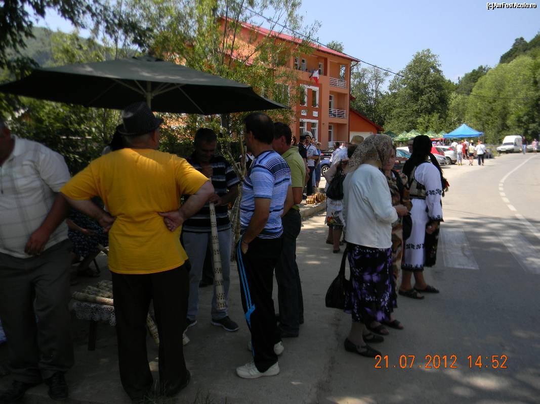 [P20] Târgul de Fete de pe Muntele Găina - Iulie 2012. Printre mulţimea de oameni se vede standul unde se vând tulnice...