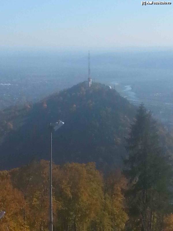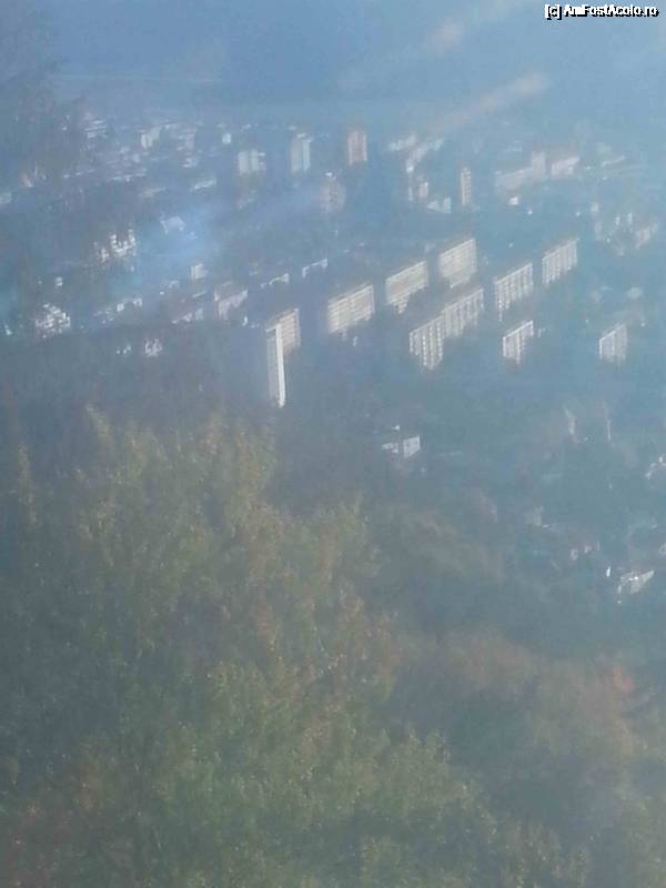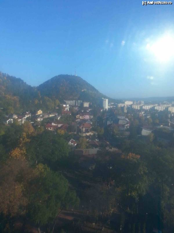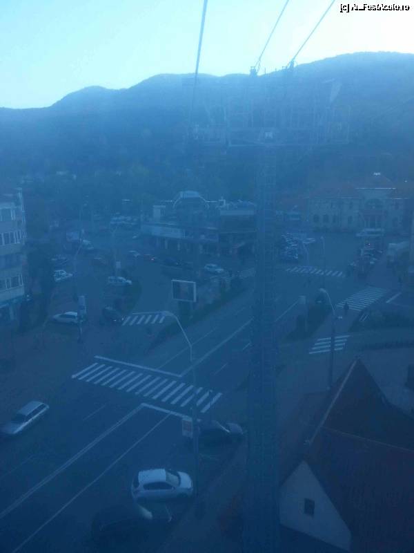[P75] Din telecabina sa vede in departare impozantul Hotel Ceahlau din centrul orasului Piatra Neamt.
