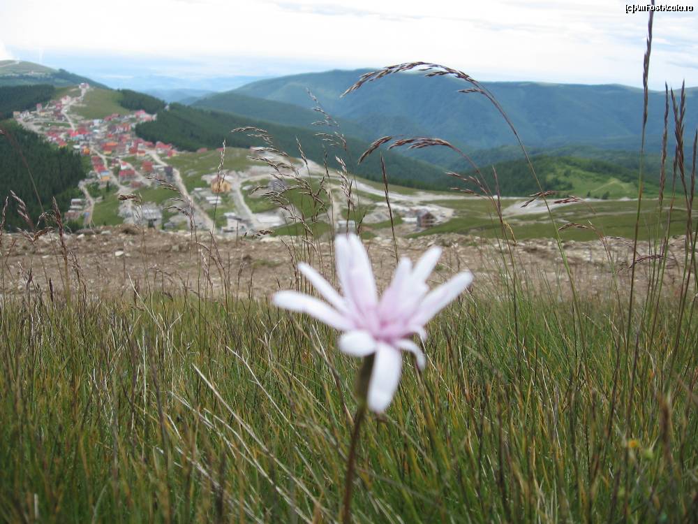 [P24] floare de munte in prim plan si ranca in plan indepartat