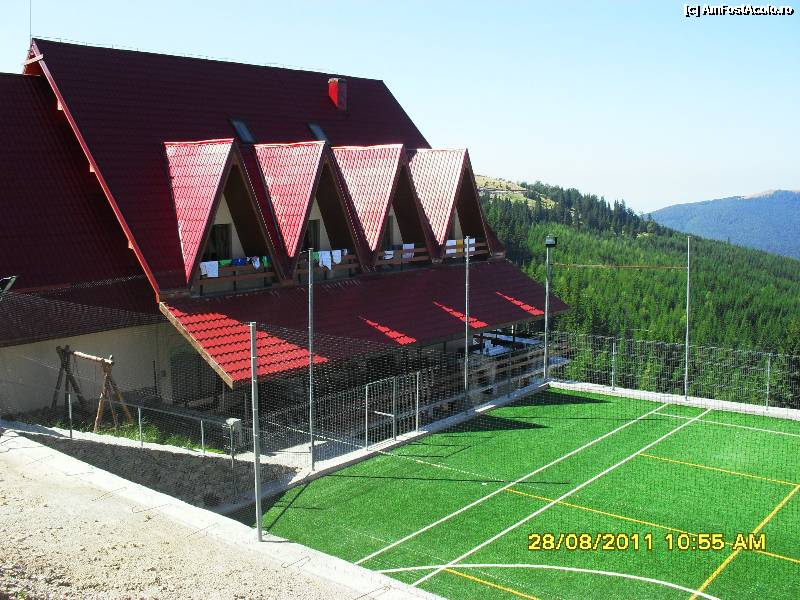 [P92] terenul de tenis cu gazon artificial verde, al pensiunii Craiul Muntilor.