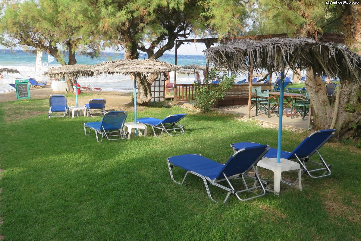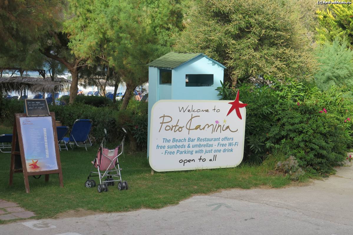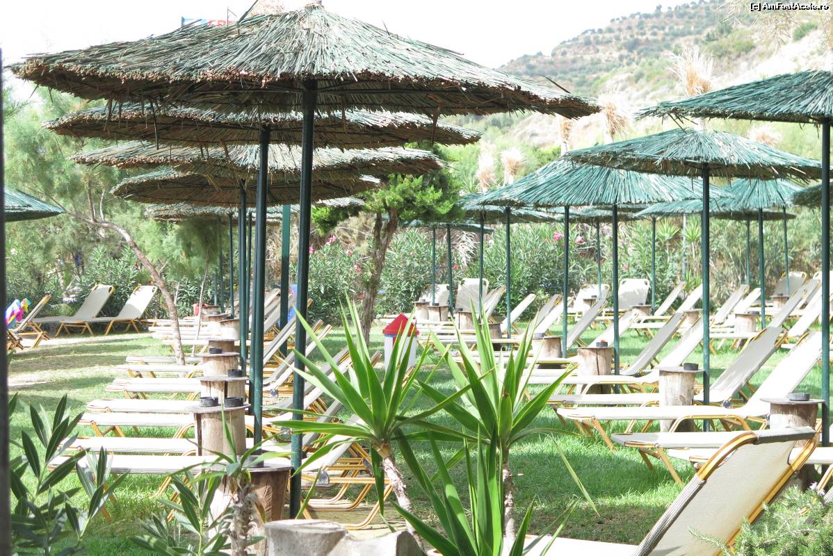 [P06] Porto Kaminia - sezlonguri de plaja, la umbra copacilor.