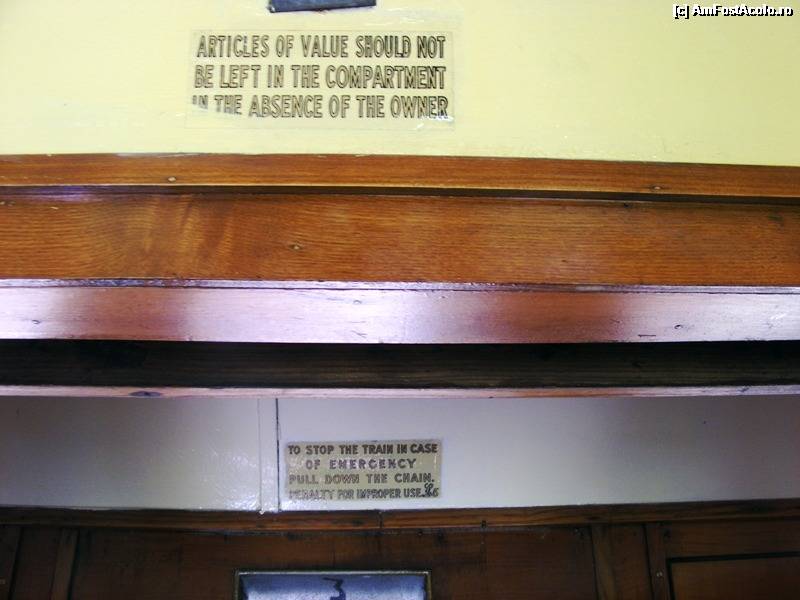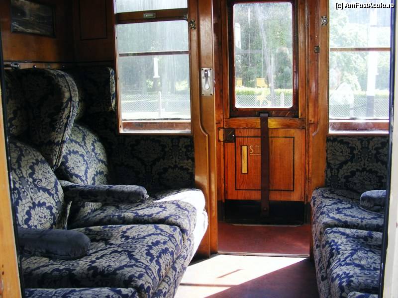 [P07] Buckfastleigh - compartimentul de clasa I. Se vede ușa care dă direct pe peron și cureaua care deschide/închide geamul.