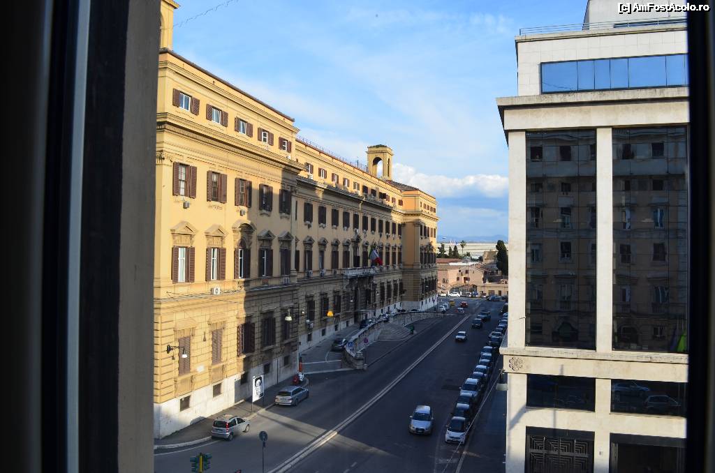 [P03] Vedere de la fereastra. Camera dadea spre Venti Settembre, iar in fata, printre cele doua cladiri, se vede Gara Termini.