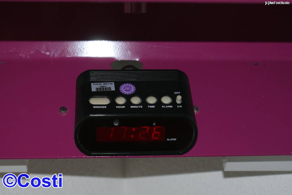 [P08] Pe acelaşi stativ cu televizorul se află şi un ceas cu alarmă, astfel că serviciul de trezire este asigurat, cu autoservire :))