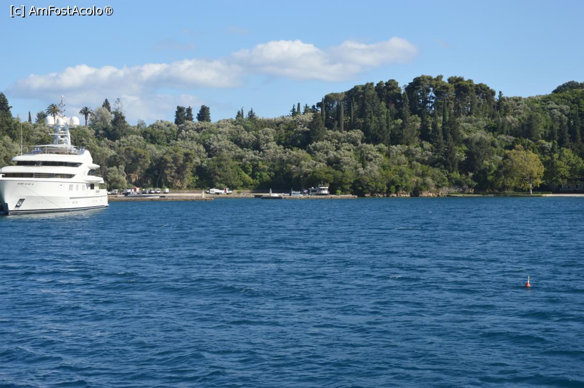 [P20] Yahtul "Christina" ancorată în portul privat al insulei Scorpios văzut de pe nava de croazieră Makedonia Palace.