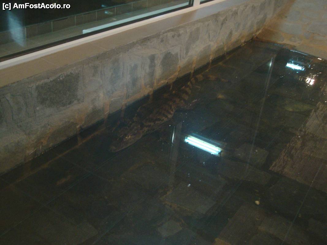 [P24] În centrul încăperii se află reședința de la Râmnicu Vâlcea a caimanului comun. S-a oferit să ne primească în gazdă, însă am refuzat politicos! Aveam deja cazare!