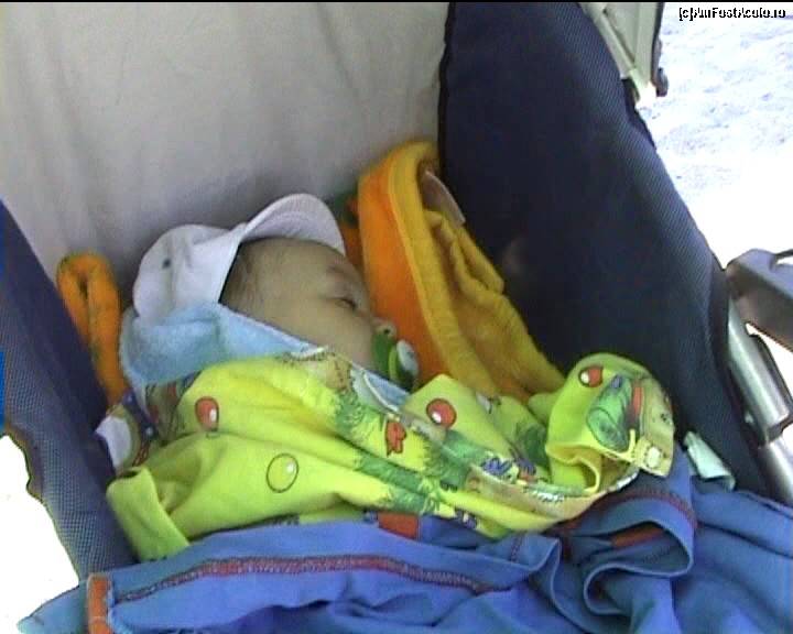 [P19] Băieţelul meu dormind în cărucior pe plajă.